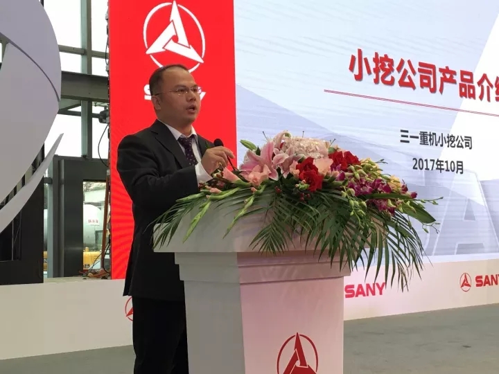 三一重机小挖公司总经理邓荆辉在仪式上向来宾们介绍了三一小挖的发展历程及产品情况。三一小挖自问世以来,凭借其“节能、高效、安全、可靠”的特性,深得国内外客户的一致好评和认可。