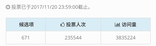 截止到2017年11月20日“网络投票”阶段结束,累计投票数达23万多票,总访问量达380多万,武汉九州龙微信公众号粉丝增加了50余倍,并直接由此产生了66位力量之星获奖客户。接下来的11月21日—11月23日即进入隆重的“颁奖”阶段。