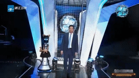 接过鲜花,美女笑得花枝乱颤。主持人蒋昌建也感叹“机器比人情商高。”