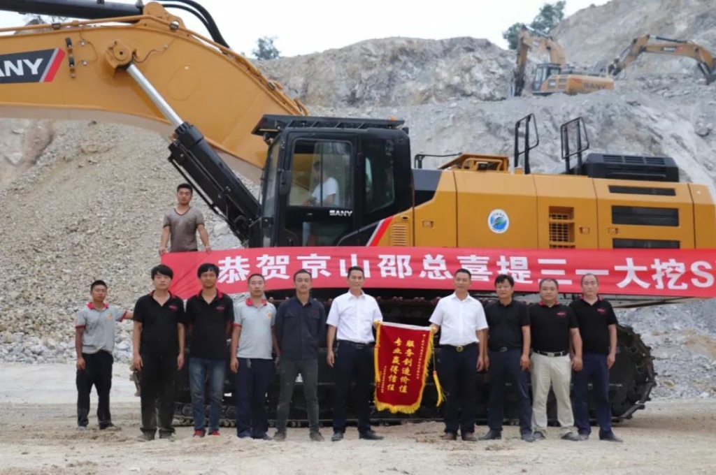 司与邵总在湖北京山举办交机仪式,SY950H挖掘机顺利交付。