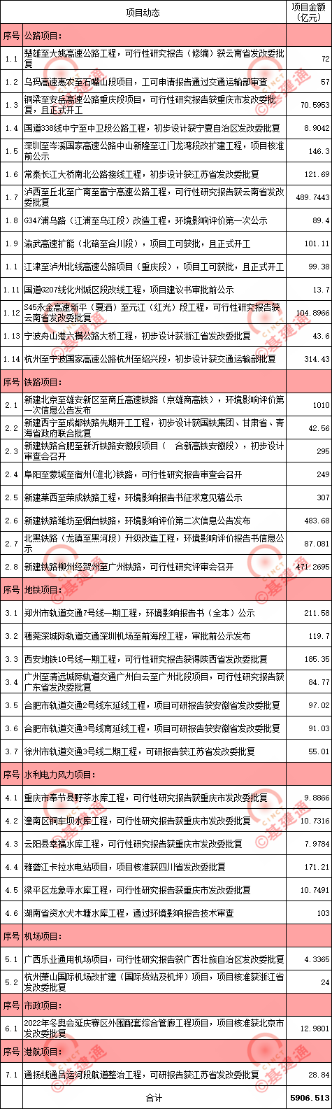 据大数据统计,2020 年 6 月份超 5900 亿元的重大铁路、公路、地铁以及机场等项目发布了最新动态,其中包括可行性研究报告、初步设计、工程核准等的批复,环评报告公示,以及评审会召开等,涉及到的项目约 39 项。