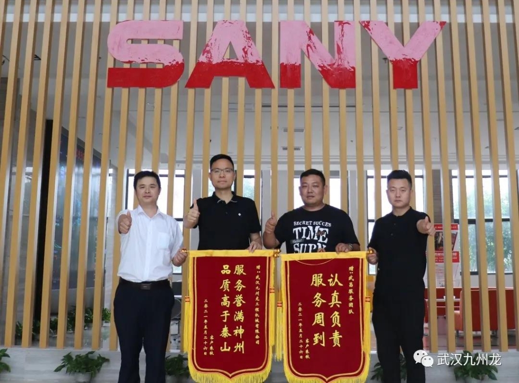 2021年5月28日,武昌客户朱总亲自开车来到武汉九州龙总部,将两面分别写着“服务誉满神州 品质高于泰山”、“认真负责 服务周到”的锦旗送到服务工程部,对我们服务工程师及时解决客户问题,认真负责的态度表示衷心感谢。