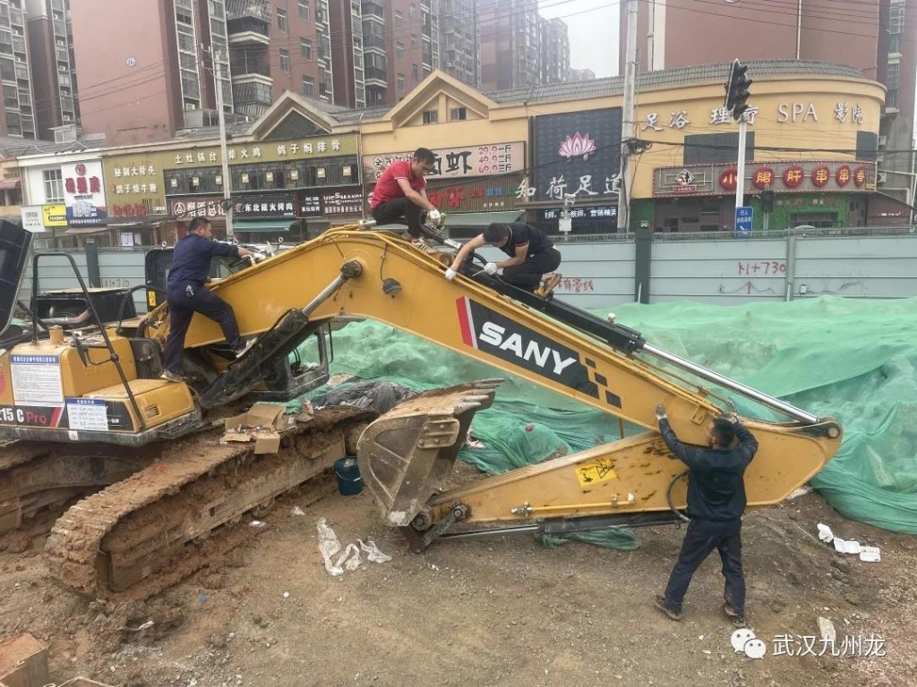 据悉,本次客户因工程需要给七台(四大三小)挖掘机安装破碎锤管路,但因工程紧迫仅仅只有一天的时间可以留给服务工程师。听说客户需求之后,万里行服务团队当机安排5辆服务工程车,10名服务工程师投入此次安装工作。