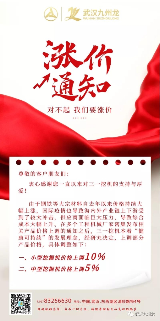 对不起 我们要涨价了…… 时间:2021.06.18 2467 字号 其他其他工程机械厂家 返回列表 上一篇 2021.06.30 成功交付!!!武汉九州龙首台自主研发生产水陆两栖挖掘机优势尽显 下一篇 2021.06.18 三一重机中挖总经理胡奇先生莅临武汉九州龙调研指导工作