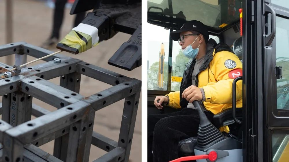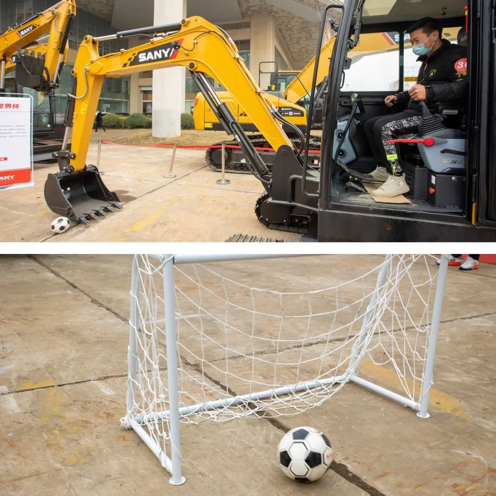 操作手通过控制挖机大臂和铲斗,将足球“踢”进球门内