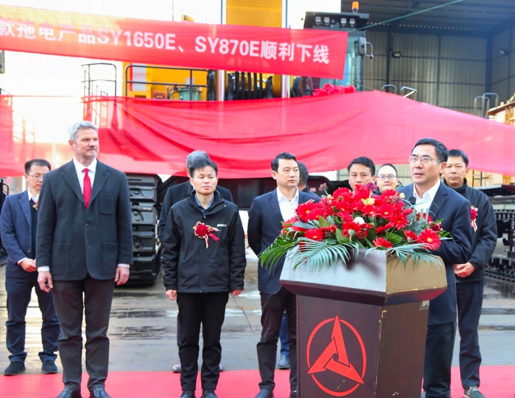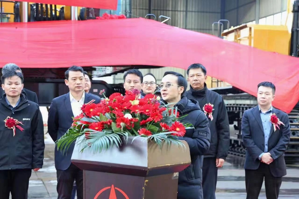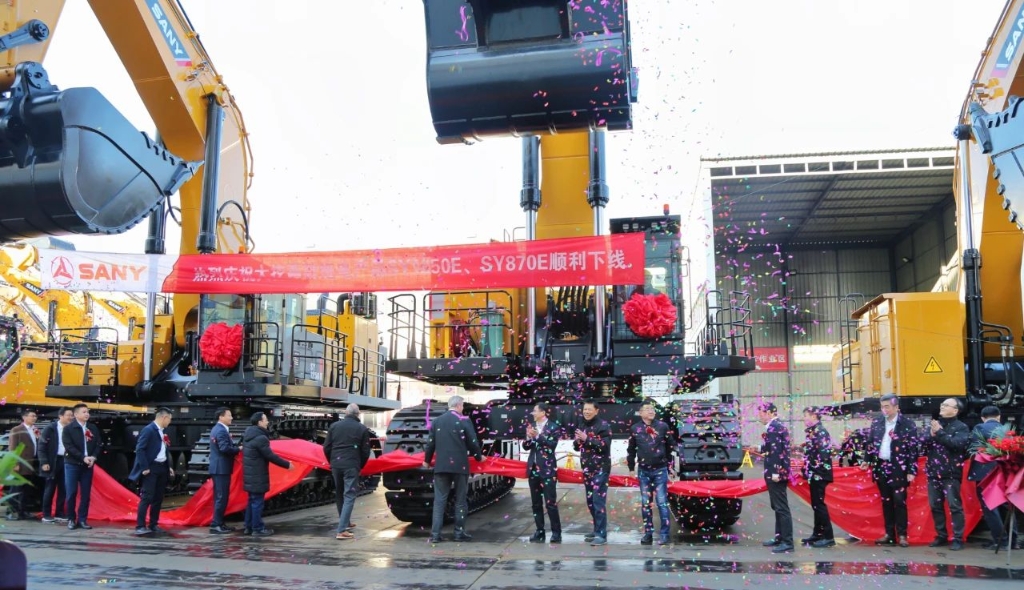 3月3日上午8:00,三一重机两款超大挖(SY1650E、SY870E)下线仪式在昆山产业园区内举行。