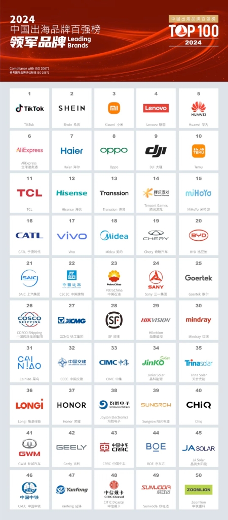 《百强榜》的参选标准包括3项:由中国企业创立;在海外业务营收占比不低于30%或不小于30亿元;品牌必须有一定的公众基础和知名度。